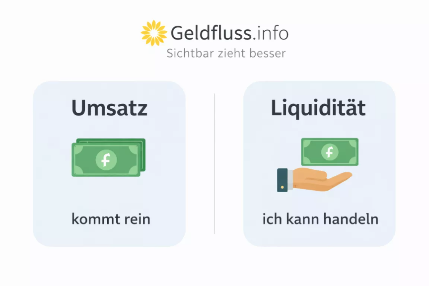 Merksatz: Umsatz ist „es kommt rein“. Liquidität ist „ich kann handeln“.